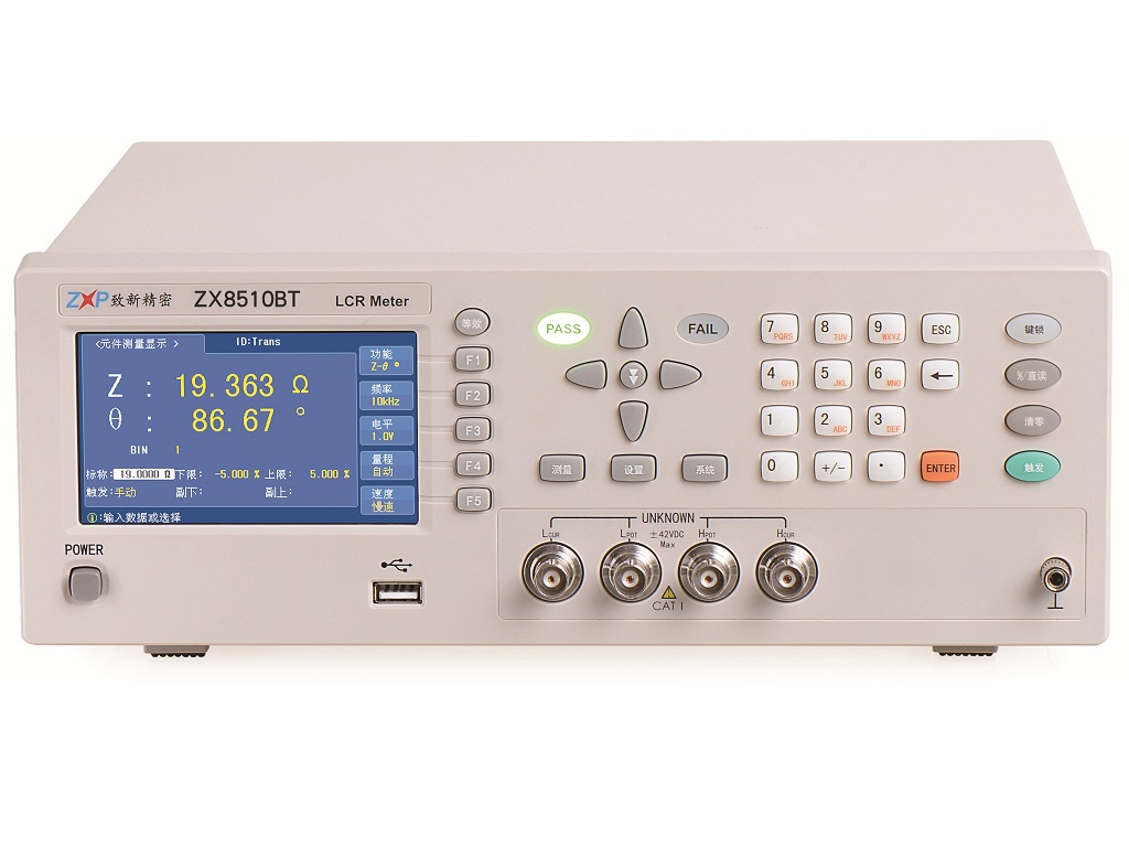 ZX8510BT/ZX8517BT型LCR數(shù)字電橋是一種高精度、寬測(cè)試范圍的阻抗測(cè)量?jī)x器,可方便升級(jí)替代*2810B/*2817B, 可方便選擇測(cè)試頻率,并可方便選擇測(cè)試信號(hào)電平??蓽y(cè)量電感L、電容C、電阻R等多種參數(shù)。既能適應(yīng)生產(chǎn)現(xiàn)場(chǎng)高速檢驗(yàn)的需要, 又能滿足實(shí)驗(yàn)室高精確度高穩(wěn)定度的測(cè)量需要, 同時(shí)儀器所提供的 HANDLER及RS232C等多種接口為儀器使用于元件自動(dòng)分選系統(tǒng)和與計(jì)算機(jī)聯(lián)網(wǎng)通訊提供了條件。