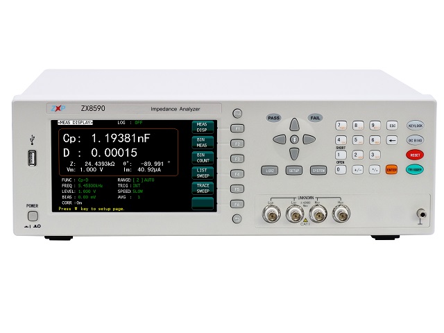 ZX8590系列高頻精密阻抗分析儀:使用自動(dòng)平衡電橋技術(shù)及四端對(duì)開(kāi)爾文測(cè)試端、測(cè)量頻率范圍涵蓋20Hz~25MHz,最小分辨率1mHz,基本測(cè)量精度可達(dá)0.05%。