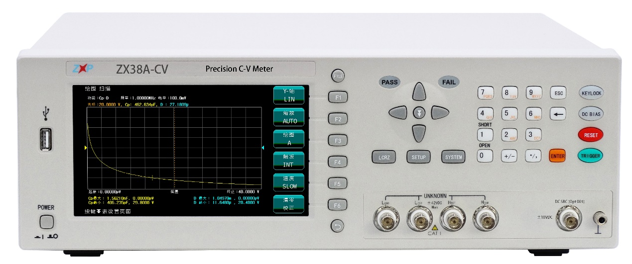 ZX38A-CV半導(dǎo)體C-V特性測試儀:使用自動平衡電橋技術(shù)及四端對開爾文測試端、測量頻率范圍涵蓋20Hz~2MHz,最小分辨率1mHz,基本測量精度可達(dá)0.05%。